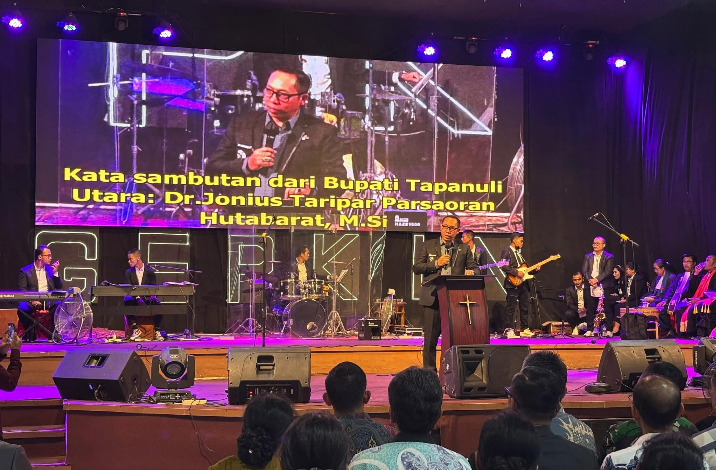 Dalam sambutannya, Bupati JTP Hutabarat menyampaikan rasa syukur atas berlangsungnya acara ini sebagai bentuk persekutuan umat yang memperkuat iman serta semangat pelayanan. Ia menekankan bahwa dalam menjalankan roda pemerintahan dan pembangunan, Pemerintah Kabupaten Tapanuli Utara menjunjung tinggi tagline ‘Martuhan, Marroha, Marbisuk’.