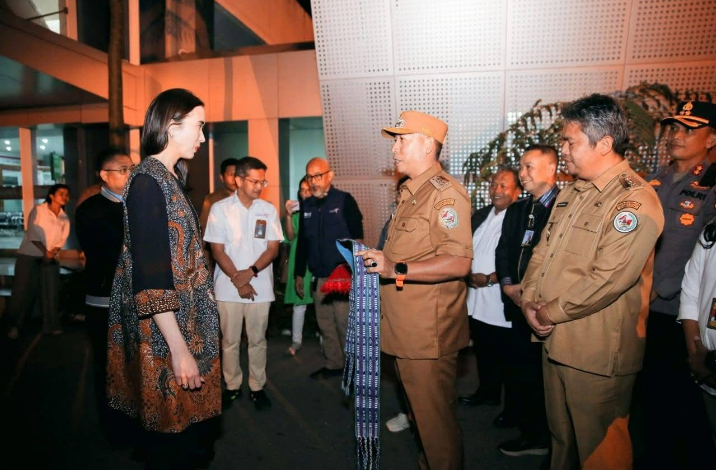 Bupati Tapanuli Utara, Dr. Jonius Taripar Parsaoran Hutabarat, S.Si, M.Si, bersama Wakil Bupati, Dr. Deni Lumbantoruan, M.Eng menyambut langsung kedatangan Menteri Pariwisata Widiyanti Putri Wardhana, dalam rangka kunjungan kerja ke wilayah Tapanuli Raya di Bandara Silangit Kecamatan Siborongborong Senin malam (07/07/2025).