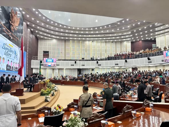 Bupati Tapanuli Utara Dr. Jonius Taripar Parsaoran Hutabarat S.Si., M.Si., menghadiri Rapat Paripurna Dewan Perwakilan Rakyat Daerah ( DPRD) Provinsi Sumatera Utara dalam rangka memperingati Hari Jadi ke-78 Provinsi Sumatera Utara Tahun 2026 dengan tema 'Satu Kolaborasi Sejuta Energi', yang diselenggarakan di Kantor DPRD Provinsi Sumatera Utara, Medan, Rabu (15 April 2026).