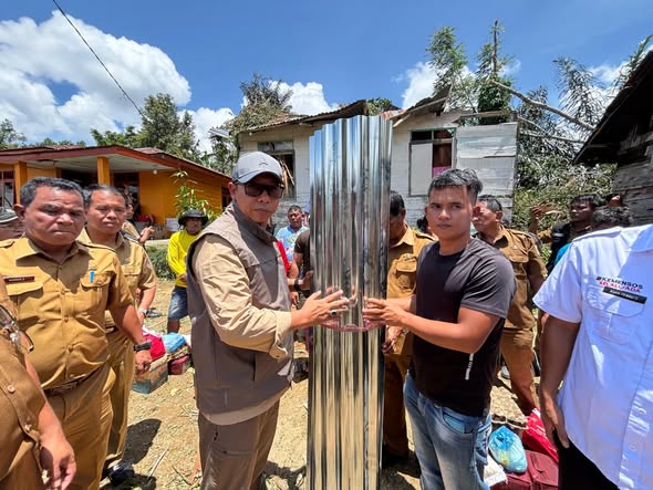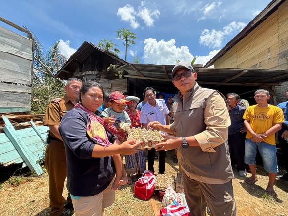 Dalam kunjungan lanjutan hari ini, Bupati didampingi jajaran perangkat daerah menyerahkan bantuan bahan bangunan berupa seng serta paket permakanan. Berdasarkan laporan sementara, sebanyak 23 unit rumah warga mengalami kerusakan akibat cuaca ekstrem tersebut.