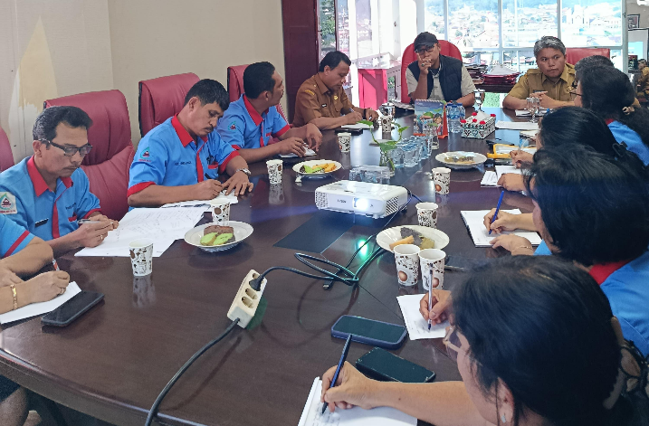Bupati Tapanuli Utara Dr. Jonius Taripar Parsaoran Hutabarat, S.Si, M.Si, bersama Wakil Bupati Dr. Deni Parlindungan Lumbantoruan, M. Eng, memimpin rapat bersama Plt Direktur Perusahaan Daerah Mual Natio Tutur PT Simanjuntak serta jajaran bertempat di ruang kerja Wakil Bupati-Kantor Bupati, Tarutung. Selasa (5/7/2025).