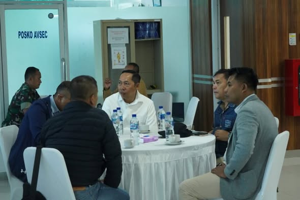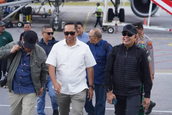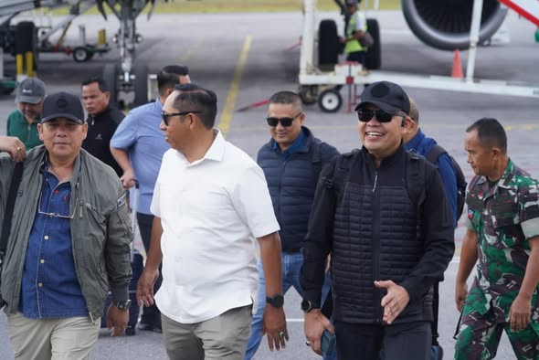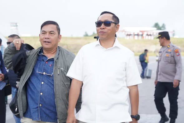 Bupati Tapanuli Utara, JTP Hutabarat, menyambut kunjungan Brigjen TNI Dody Muhtar Taufik bersama Tim Monitoring dan Evaluasi Satgas Percepatan Rehabilitasi dan Rekonstruksi Pasca Bencana Alam di Provinsi Aceh, Sumatera Utara, dan Sumatera Barat di Bandara Silangit, Minggu (12/04/2026).