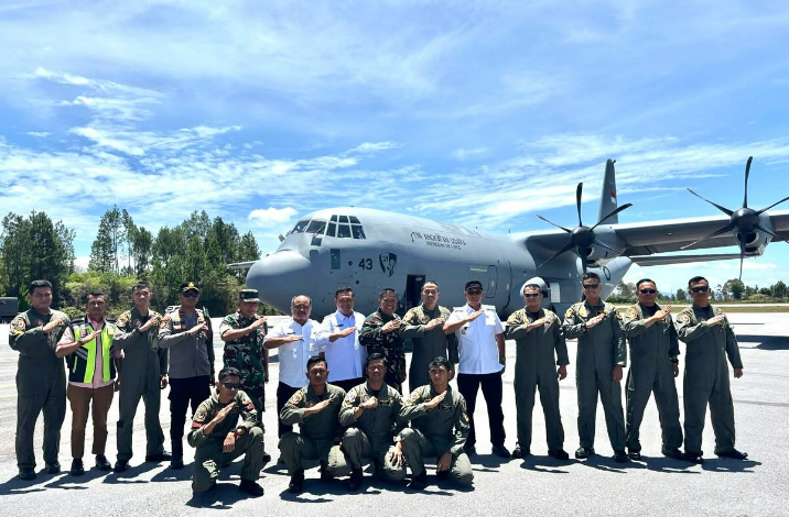 Bupati Tapanuli Utara, Dr. Jonius Taripar Parsaoran Hutabarat, S.Si., M.Si, menyambut kedatangan Tim TNI Angkatan Udara di Bandara Silangit, Siborongborong, pada Rabu (8/10/2025).