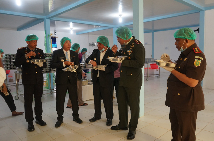 Rombongan Bupati disambut hangat oleh petugas SPPG. Dalam kesempatan tersebut, Bupati bersama Forkopimda turut mencicipi makanan yang disediakan. “Rasa dan kualitas makanan yang kita nikmati hari ini sangat baik. Sanitasi dapur juga dijaga dengan ketat. Setiap petugas dan tamu wajib menggunakan penutup kepala, sarung tangan, serta masker. Ini contoh standar kebersihan yang patut ditiru,” ujar Bupati.