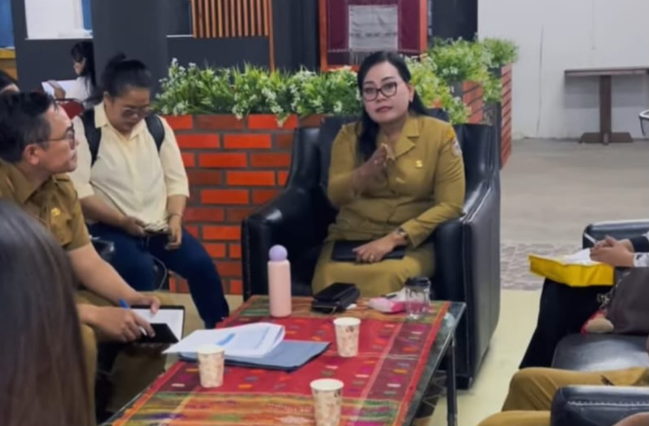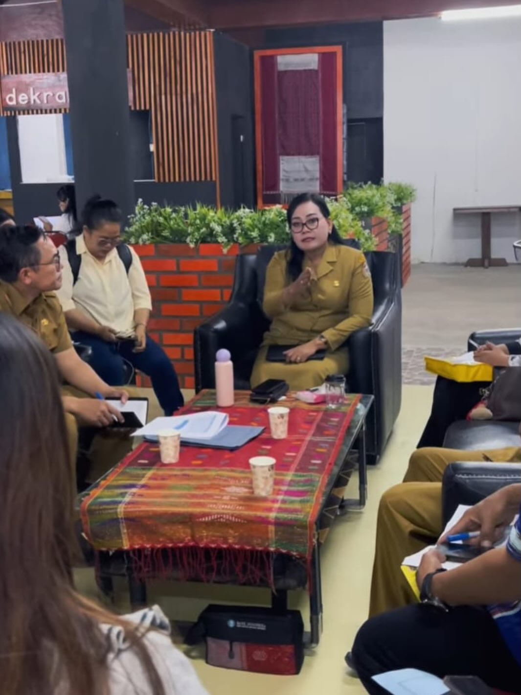 Ketua Dewan Kerajinan Nasional Daerah (Dekranasda) Kabupaten Tapanuli Utara, Ny. Angelina JTP Hutabarat memimpin rapat bersama Dinas Ketenagakerjaan dan Lembaga Pelatihan Kerja (LPK) Swasta. Kegiatan berlangsung di Kantor Dekranasda Taput, Jalan S.M. Raja, Tarutung, Senin (3 November 2025).