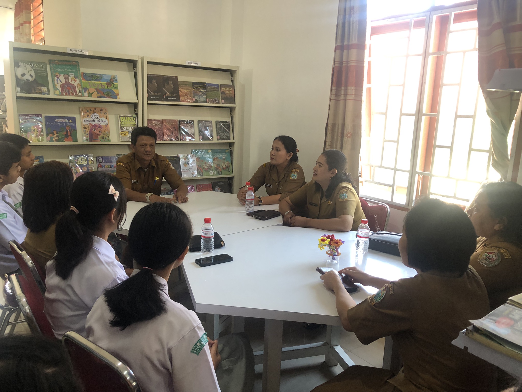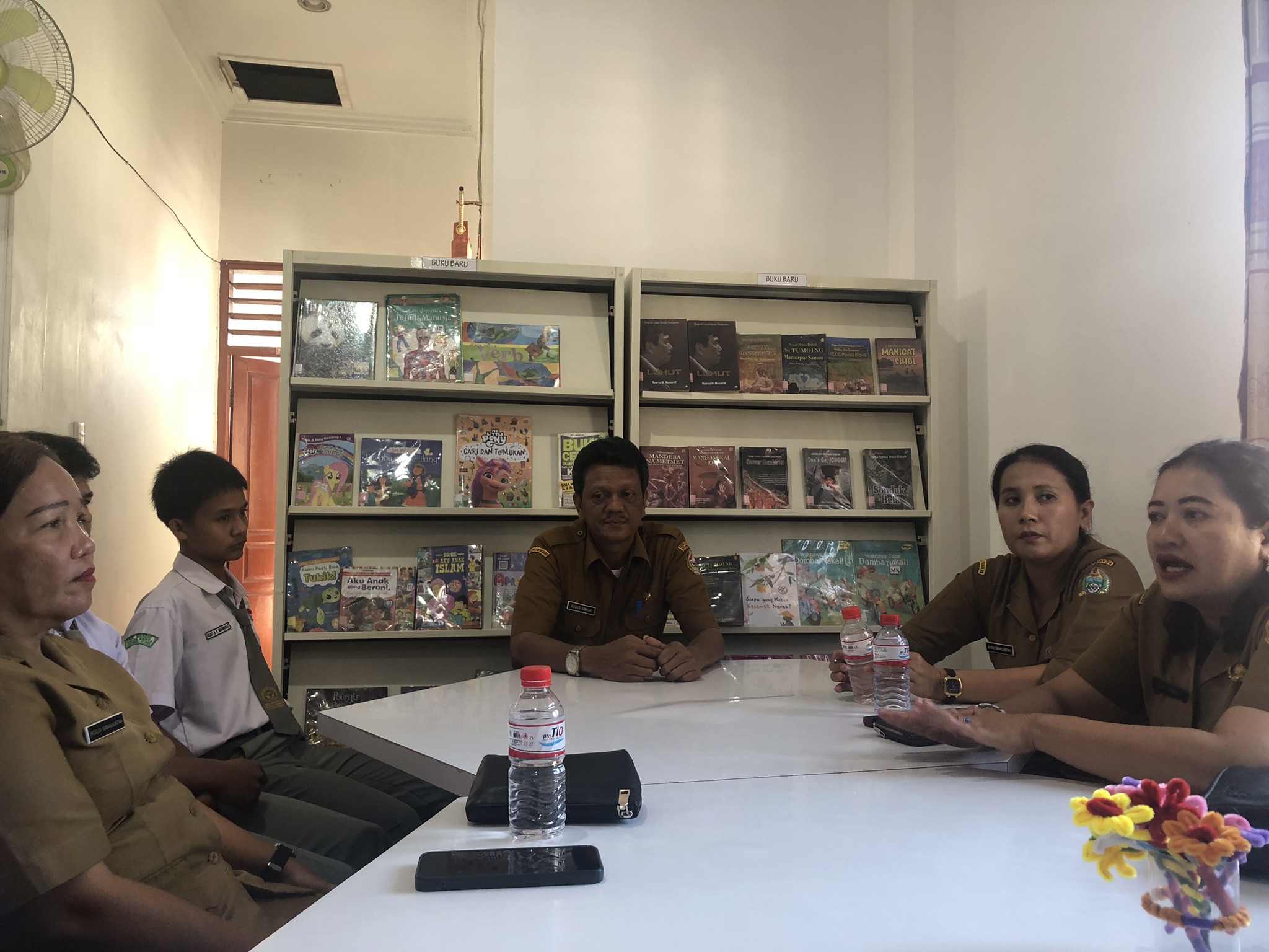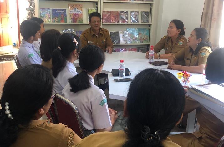 Dinas Perpustakaan Kabupaten Tapanuli Utara menerima kunjungan guru pembimbing dari SMK Negeri 1 Siatas Barita dalam rangka monitoring siswa-siswi yang sedang melaksanakan Praktik Kerja Industri (Prakerin)