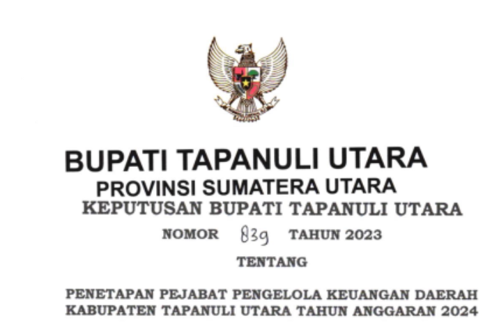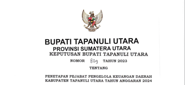 Keputusan Bupati Tapanuli Utara Nomor 839 Tahun 2023 Tentang Penetapan Pejabat Pengelola Keuangan Daerah Kabupaten Tapanuli Utara Tahun Anggaran 2024