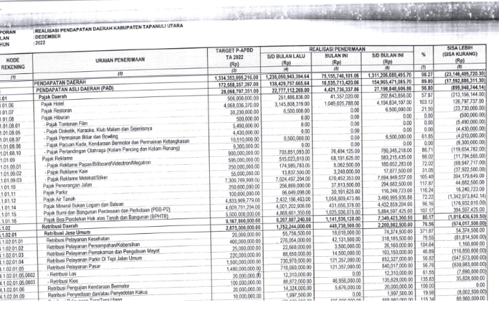 Laporan Realisasi Pendapatan Daerah Kabupaten Tapanuli Utara Tahun 2022