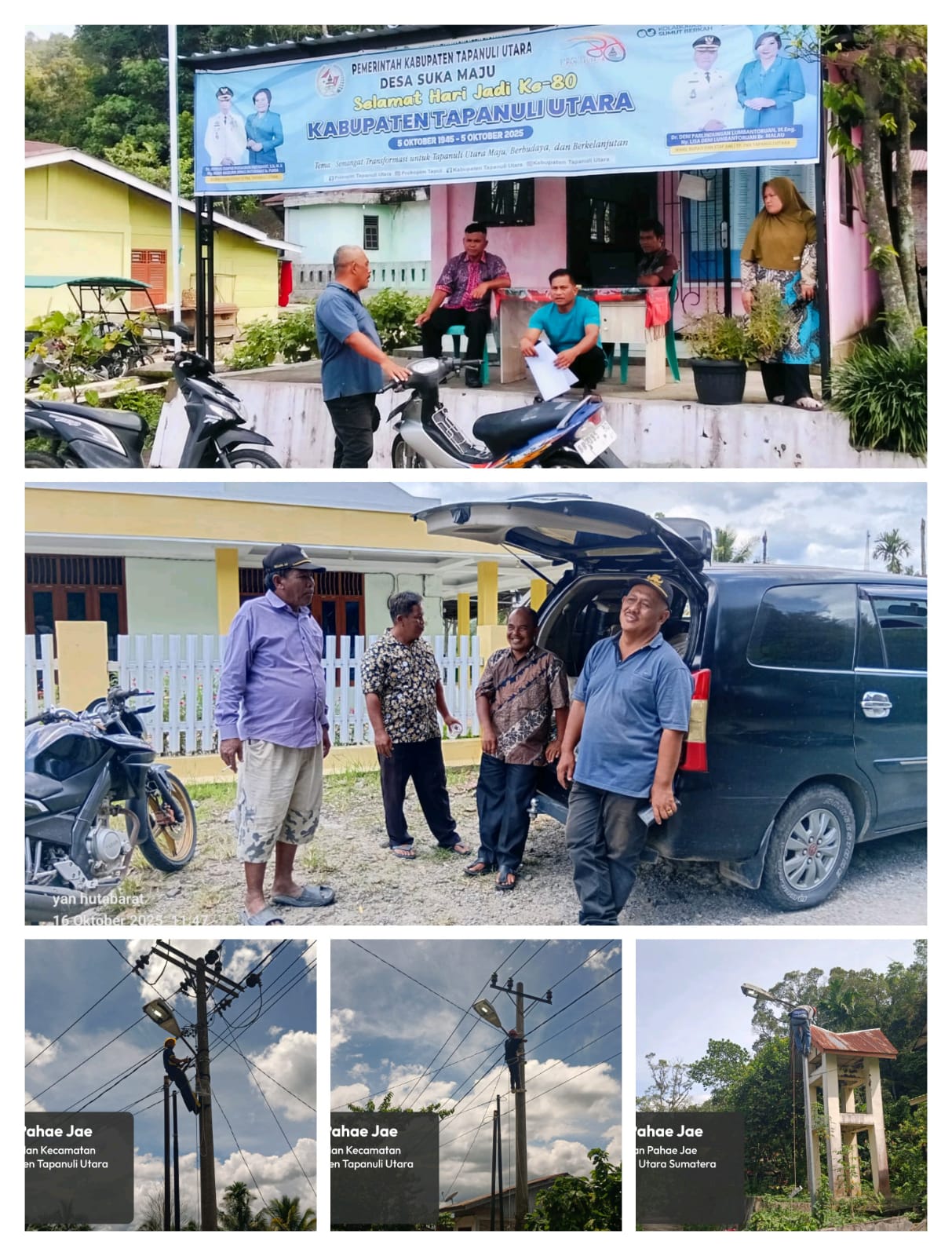 Pada hari Kamis, 16 Oktober 2025 Dinas Perumahan dan Kawasan Permukiman (PERKIM) melakukan Monitoring dan Pemeliharaan Penerangan Jalan Umum (PJU) dan LPJK di kecamatan Pahae Jae tepatnya di Desa Suka Maju, Desa Setia, Desa Parsaoran Samosir, dan Desa Parsaoran Nainggolan.