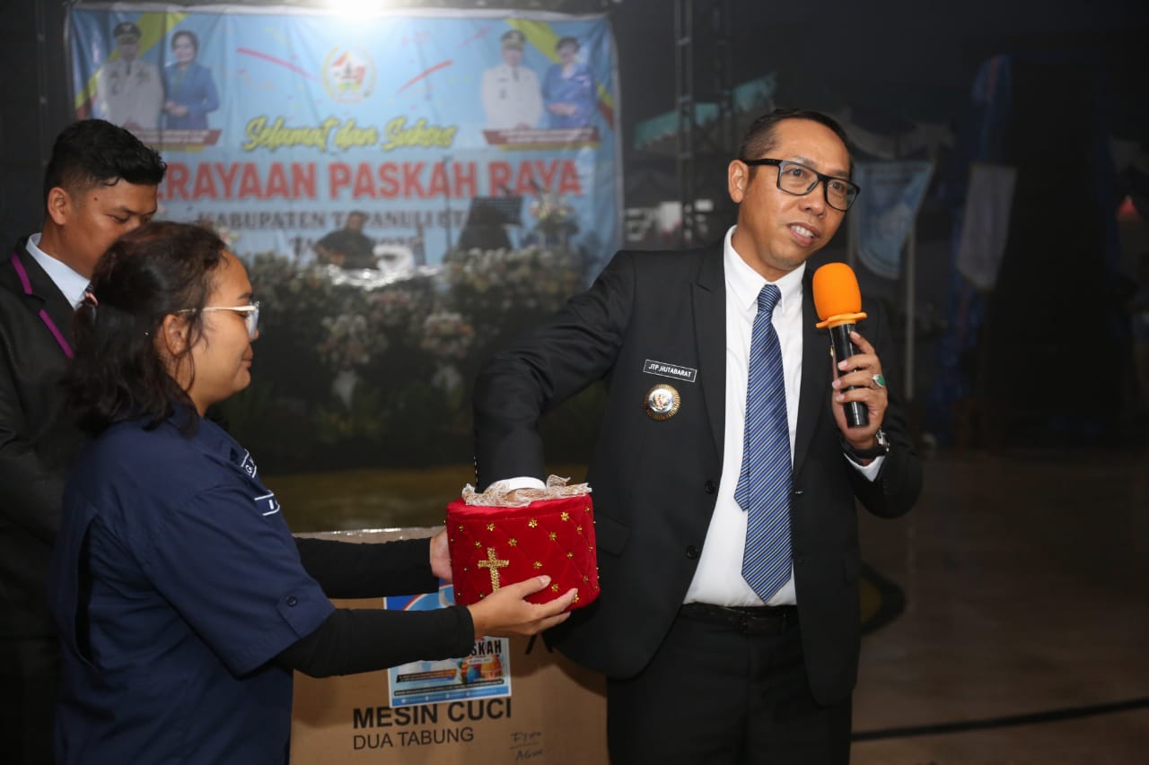 Bupati Tapanuli Utara, Dr. Jonius Taripar Parsaoran Hutabarat, S.Si, M.Si, didampingi oleh Ketua TP. PKK Taput, Ny. Angelina JTP Hutabarat Br. Purba, serta Wakil Bupati Tapanuli Utara, Dr. Deni Parlindungan Lumbantoruan, M.Eng, bersama Ketua Bidang II TP. PKK Taput, Ny. Lisa Deni Lumbantoruan Br. Malau hadiri Perayaan Paskah Raya Kabupaten Tapanuli Utara Tahun 2025 bertempat di Menara Pandang. (Selasa, 22 April 2025).