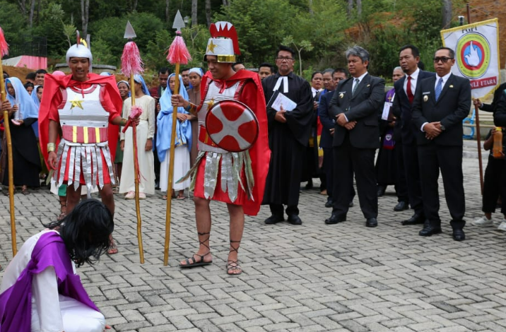 Perayaan ini diawali dengan prosesi Via Dolorosa yang menggambarkan penyaliban Tuhan Yesus Kristus, dilanjutkan dengan ibadah dengan pembawa khotbah oleh Kepala Departemen Diakonia HKBP, Pdt. Dr. Deonal Sinaga.