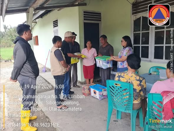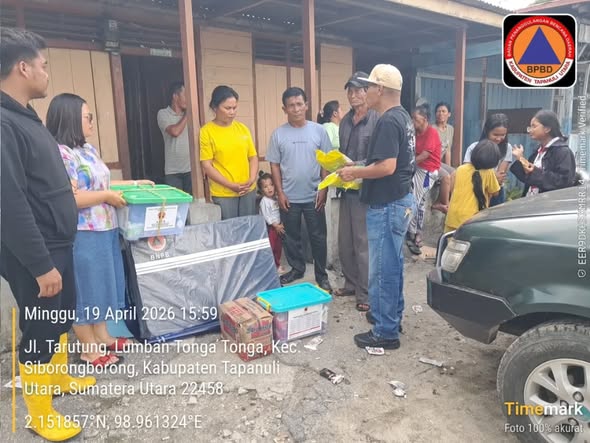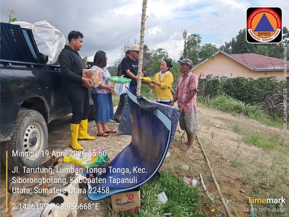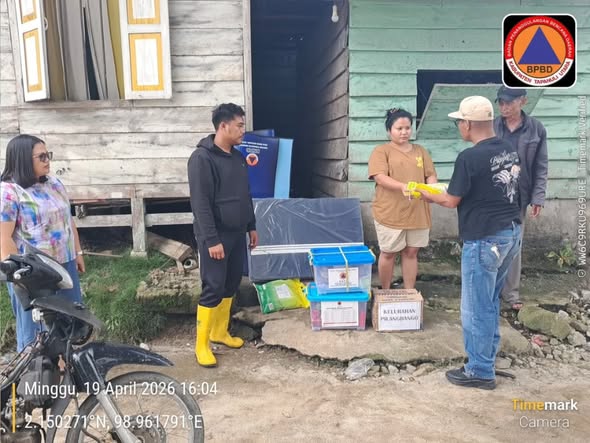 Pemerintah Kabupaten Tapanuli Utara melalui Badan Penanggulangan Bencana Daerah (BPBD) menyalurkan bantuan darurat kepada warga yang terdampak bencana cuaca ekstrem berupa angin puting beliung di Desa Hutaraja, Kecamatan Sipoholon, Minggu (19/04/2026).