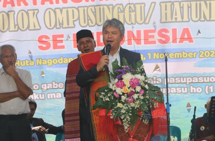 Wakil Bupati menyampaikan selamat atas pelaksanaan Partangiangan Bolon dan kepada pengurus baru Pomparan Ompusunggu.