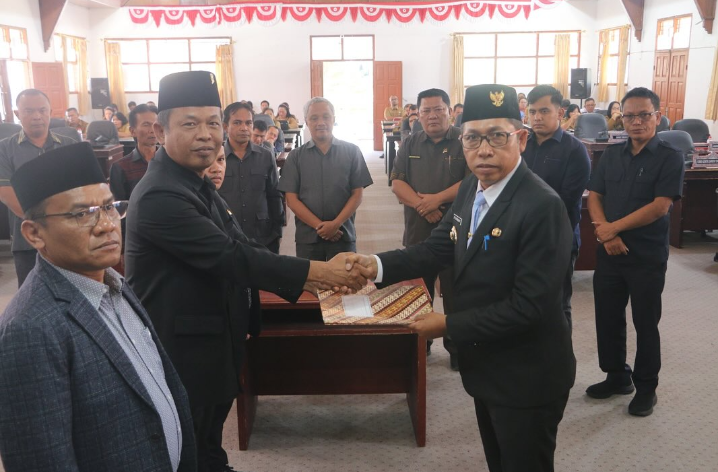 Bupati Tapanuli Utara Dr. Jonius Taripar Parsaoran Hutabarat, S.Si., M.Si bersama Ketua DPRD Rudi Nababan menandatangani Nota Kesepakatan Kebijakan Umum Anggaran dan Prioritas Plafon Anggaran Sementara (KUA-PPAS) Tahun Anggaran 2026.