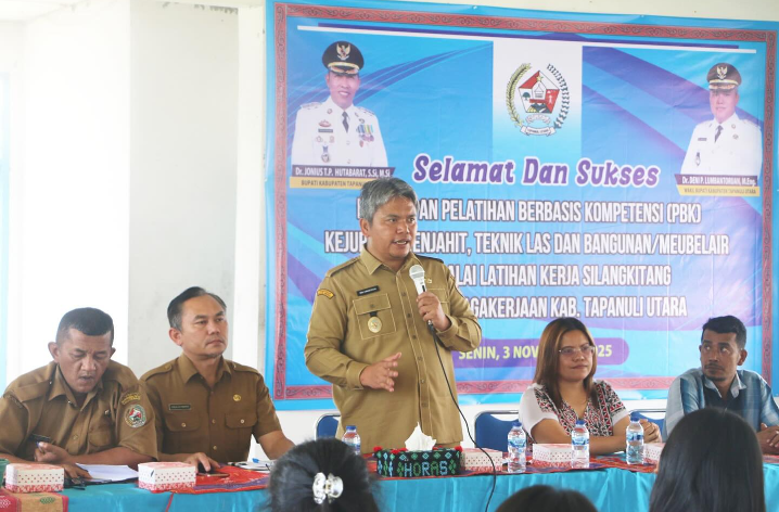 Wakil Bupati Tapanuli Utara Dr. Deni Parlindungan Lumbantoruan, M.Eng menghadiri Penutupan Pelatihan Berbasis Kompetensi (PBK) di UPT Balai Latihan Kerja (BLK) Silangkitang, Kecamatan Sipoholon, Senin (3 November 2025). Kegiatan ini turut dihadiri Kepala Dinas Ketenagakerjaan Josua Hutabarat bersama jajaran.