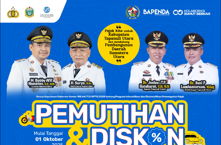 Mulai 1 Oktober 2025, Pemerintah Kabupaten Tapanuli Utara bersama Pemerintah Provinsi Sumatera Utara melalui BAPENDA menghadirkan program Pemutihan dan Diskon Pajak Kendaraan Bermotor (PKB).