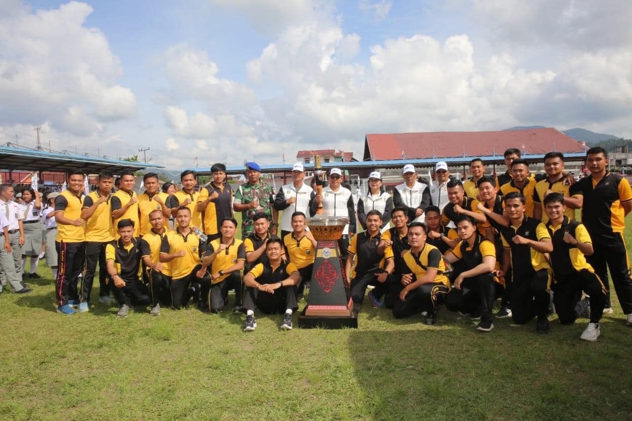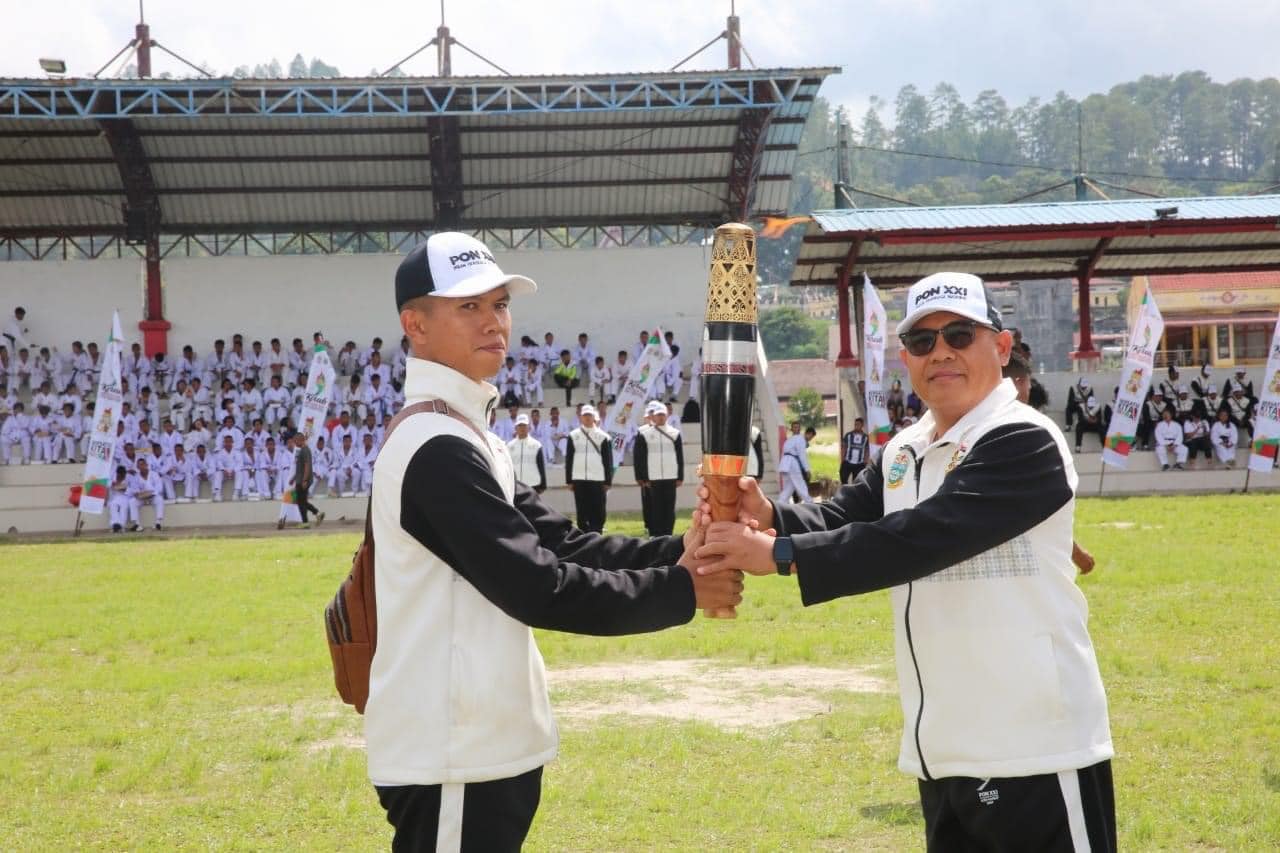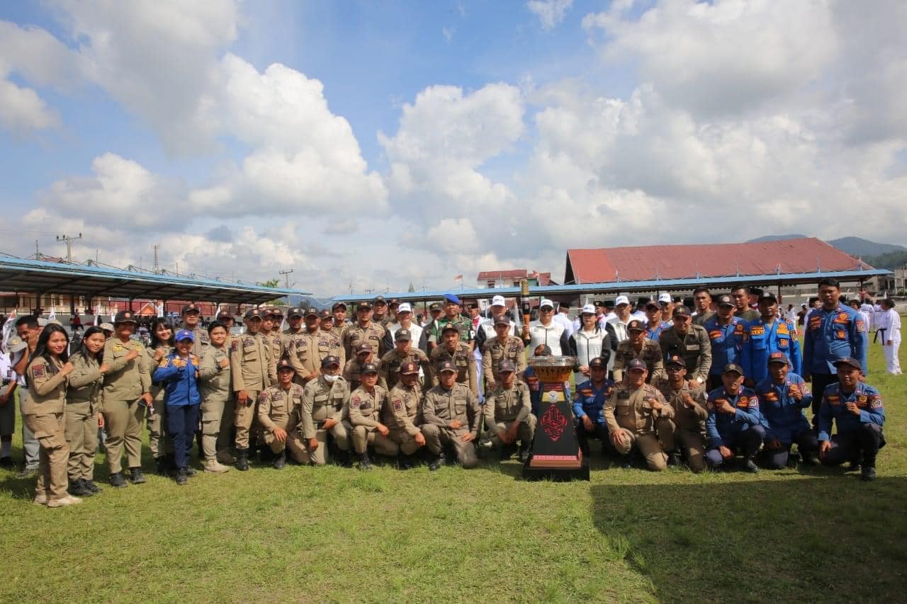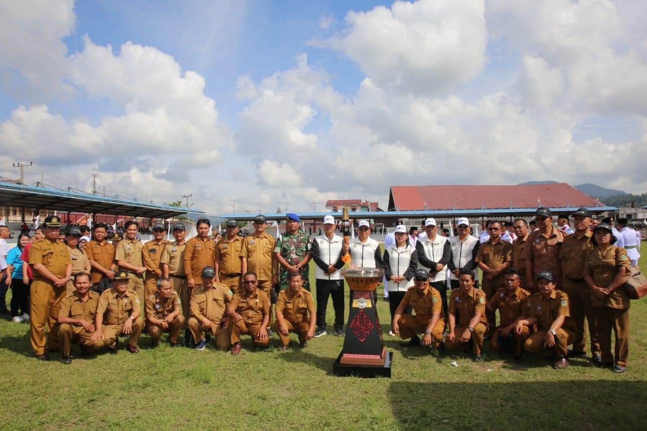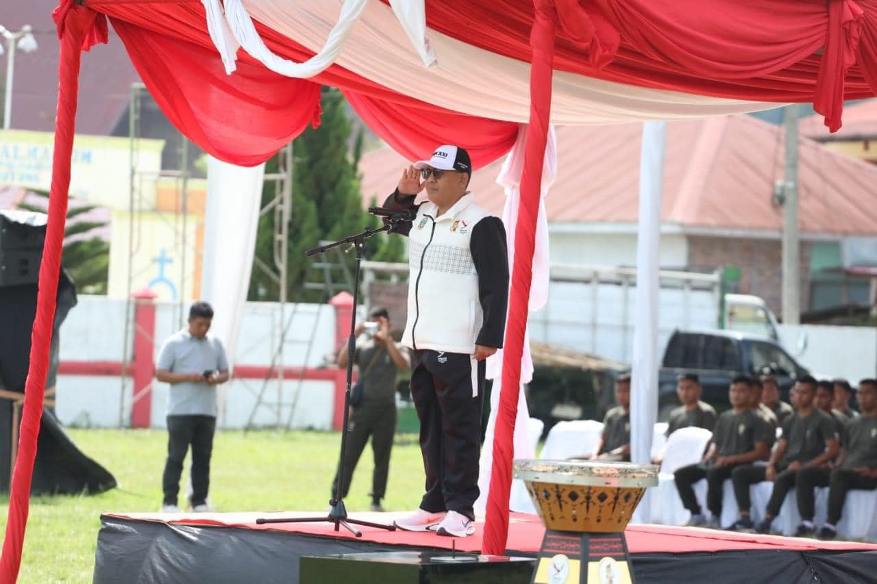 Penjabat Bupati Tapanuli Utara Dr. Dimposma Sihombing, S.Sos, M.A.P Bertindak sebagai Inspektur Upacara pada Kirab Api Pekan Olahraga Nasional ke XXI di Kabupaten Tapanuli Utara