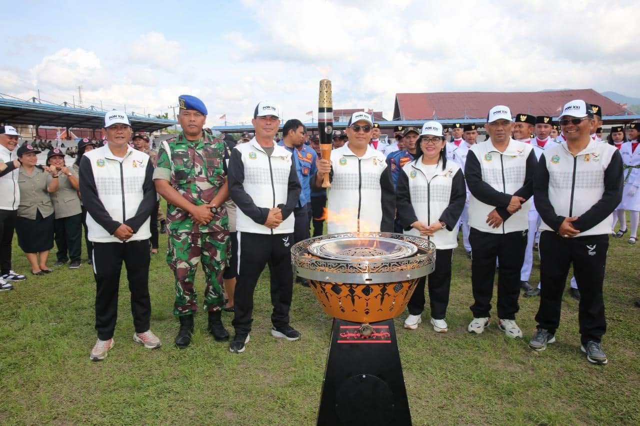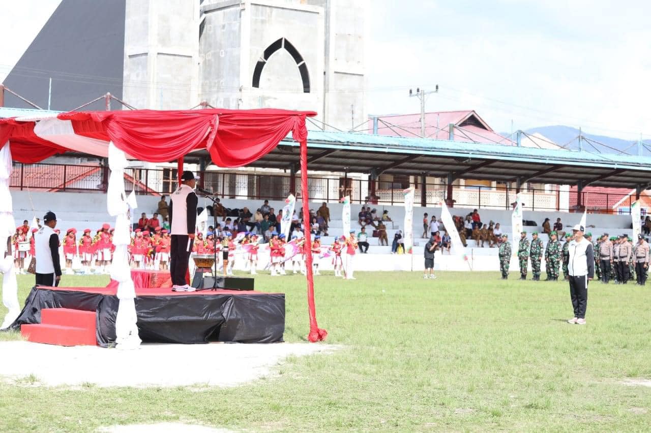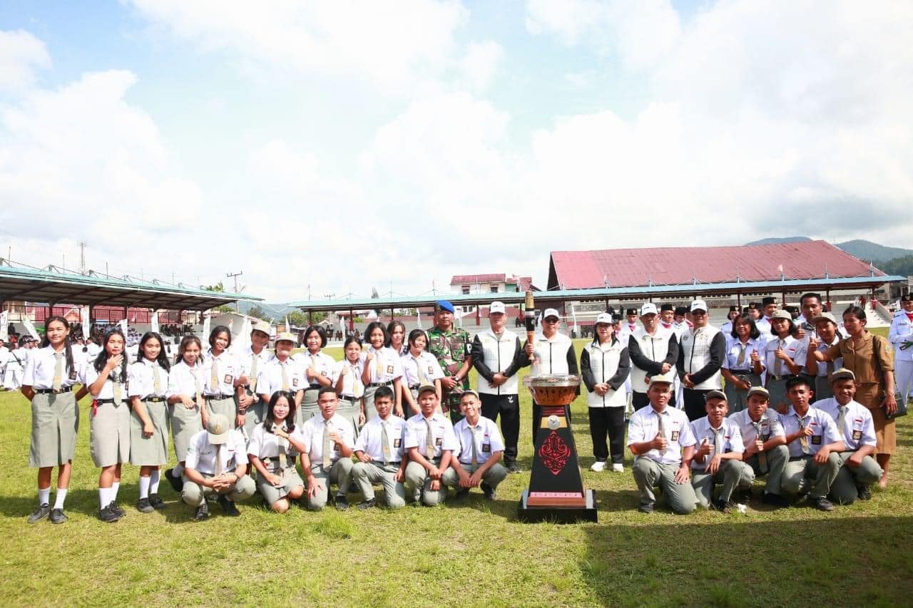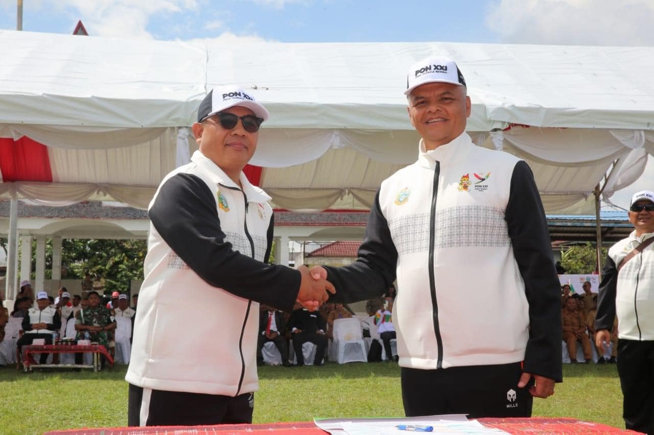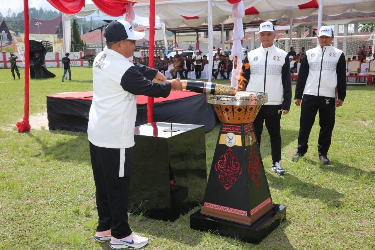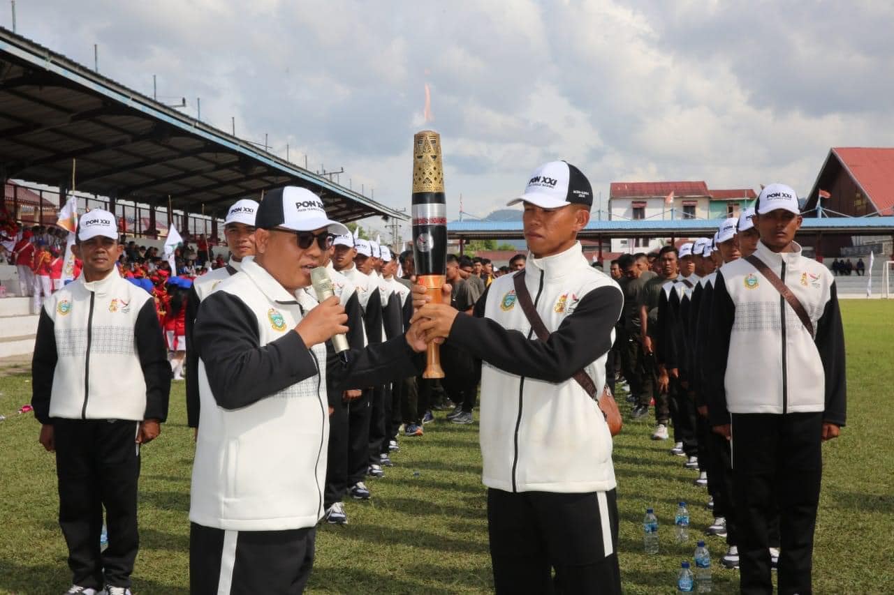 Penjabat Bupati Tapanuli Utara Dr. Dimposma Sihombing, S.Sos, M.A.P Bertindak sebagai Inspektur Upacara pada Kirab Api Pekan Olahraga Nasional ke XXI di Kabupaten Tapanuli Utara