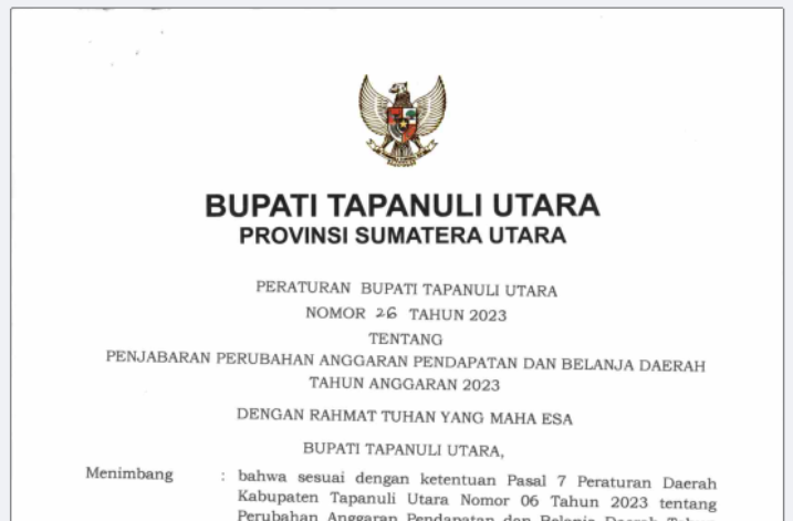 Peraturan Bupati No.26 Tahun 2023 Tentang Penjabaran Perubahan APBD TA 2023