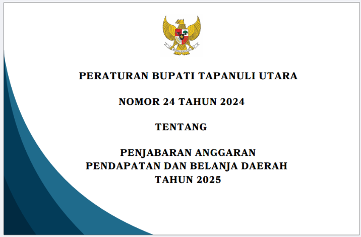 PERATURAN BUPATI TAPANULI UTARA NOMOR 24 TAHUN 2024 TENTANG PENJABARAN ANGGARAN PENDAPATAN DAN BELANJA DAERAH TAHUN 2025