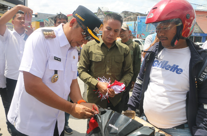 Pimpin Gerakan Pembagian Bendera Merah Putih di Tarutung, Bupati Tapanuli Utara Pesankan Cinta NKRI