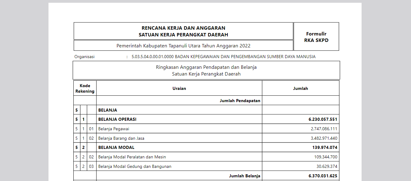 Ringkasan Dokumen RKA SKPD Tahun Anggaran 2022