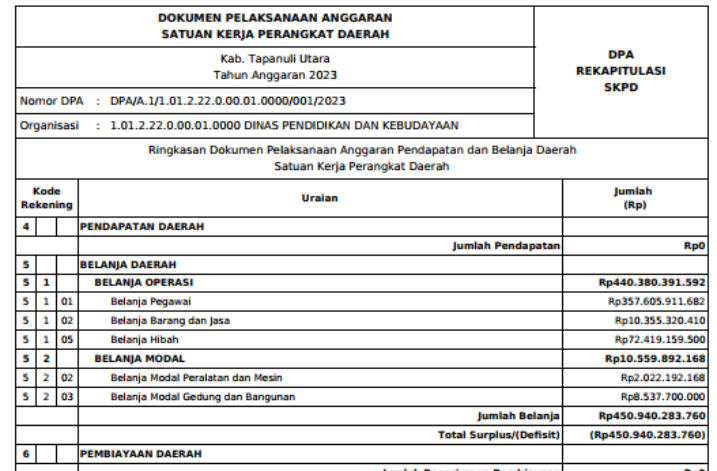 Ringkasan DPA SKPD Tahun Anggaran 2023