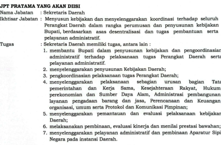 SELEKSI TERBUKA PENGISIAN JABATAN PIMPINAN TINGGI PRATAMA SEKRETARIS DAERAH KABUPATEN TAPANULI UTARA TAHUN 2025
