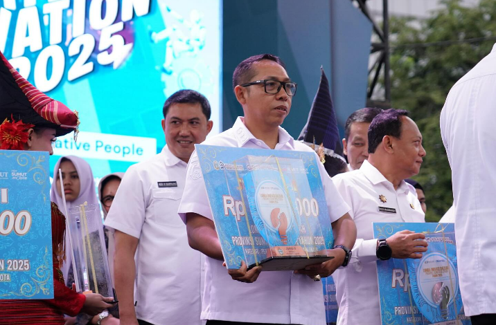Kegiatan berlangsung di Halaman Kantor Gubernur Sumut, Medan, Rabu 19 November 2025. Bupati Taput Jonius Taripar Hutabarat menerima penghargaan Lomba Inovasi.