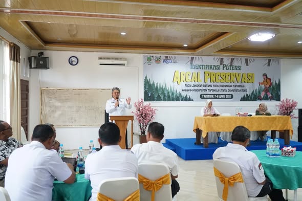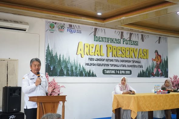 Wakil Bupati Tapanuli Utara, Dr. Deni Parlindungan Lumbantoruan, M.Eng., membuka secara resmi Workshop Pemetaan Potensi Areal Konservasi pada Lanskap Batang Toru – Harangan Tapanuli