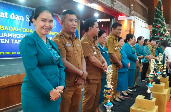 Pelaksanaan Ibadah doa Keselamatan bersama Jambore Kader PKK Kabupaten Tapanuli Utara yang dilaksanakan di Sopo Partukoan Tarutung dalam mendoakan warga yang berdampak Bencana Alam. Selasa, 2 Desember 2025.